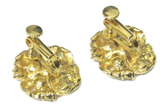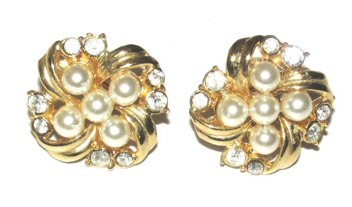 パール×ラインストーン・ゴールドフラワー★イヤリング★パーティー・フォーマル・セレモニー