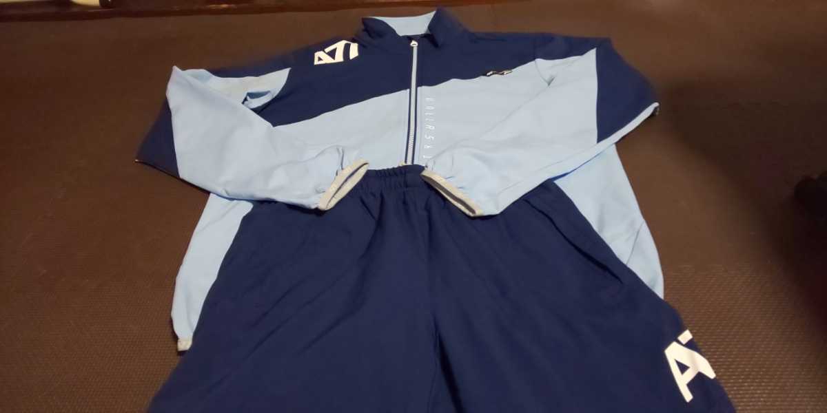 美品ASICS青、白、薄い水色ストレッチ上下セット