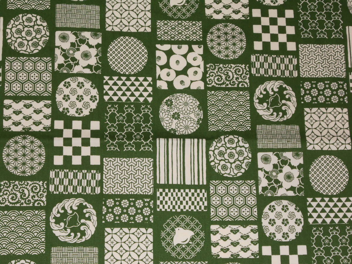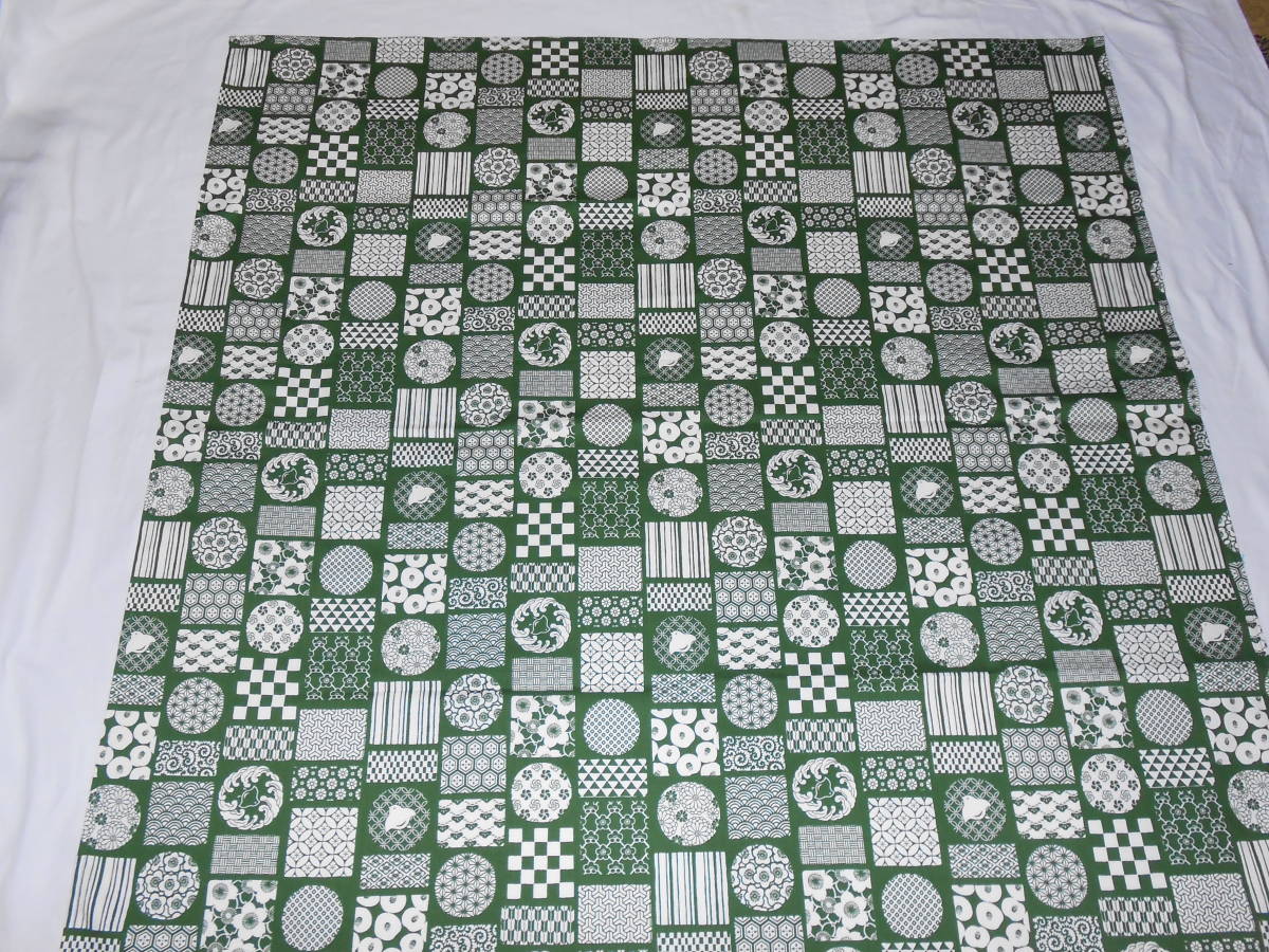 手作り、綿100%、108㎝の風呂敷、和柄格子、緑