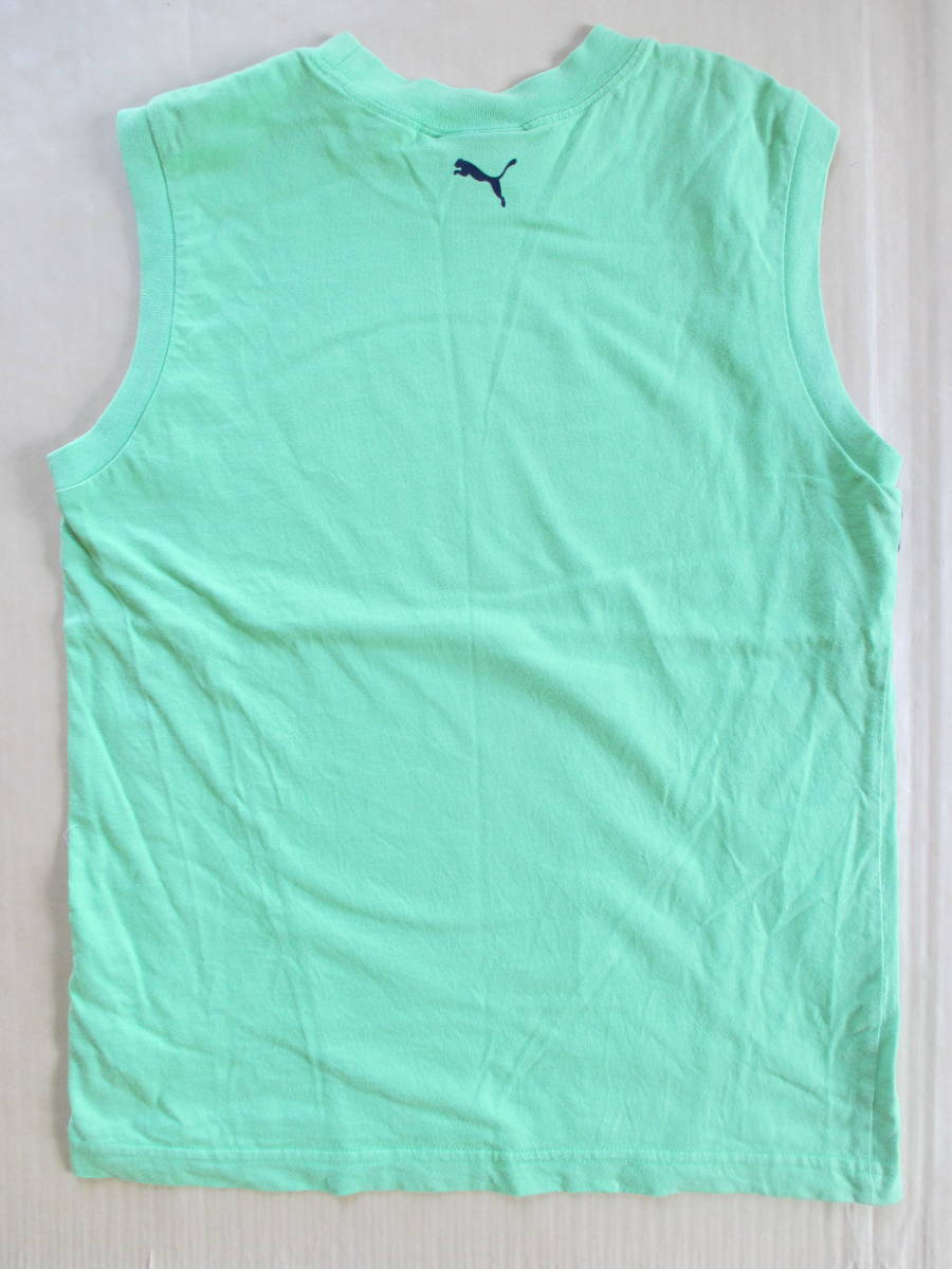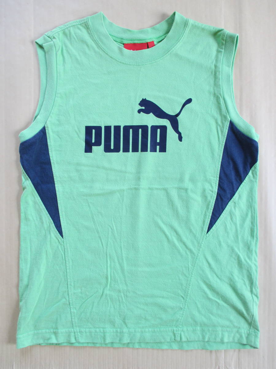 送料210円 PUMA キッズ ロゴ マーク プリント タンクトップ 緑 150 身幅43cm プーマ 子供用 スポーツ ノースリーブ ライム