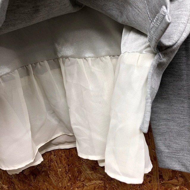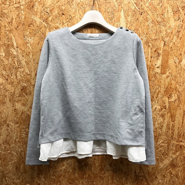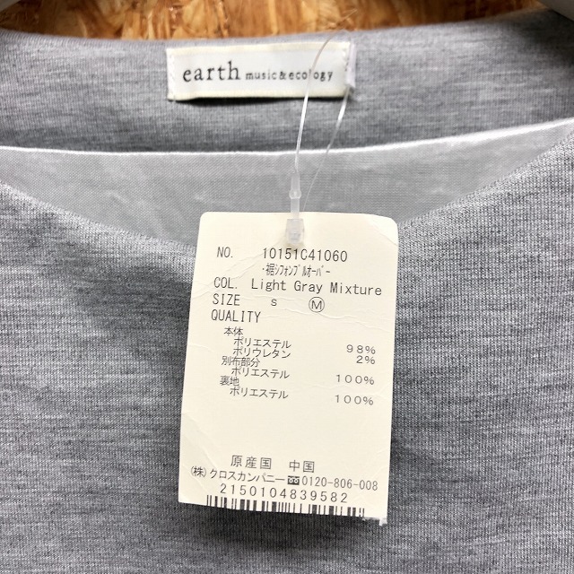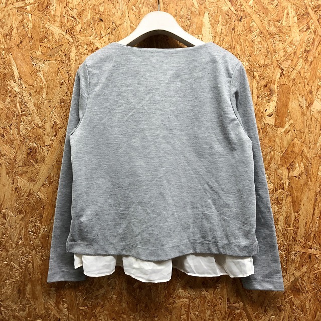 商品タイトル | earth music&ecology - M レディース 裏地付き裾シフォンカットソー 肩に飾りボタン 長袖 無地 ポリエステル×ポリウレタン ヘザーグレー |