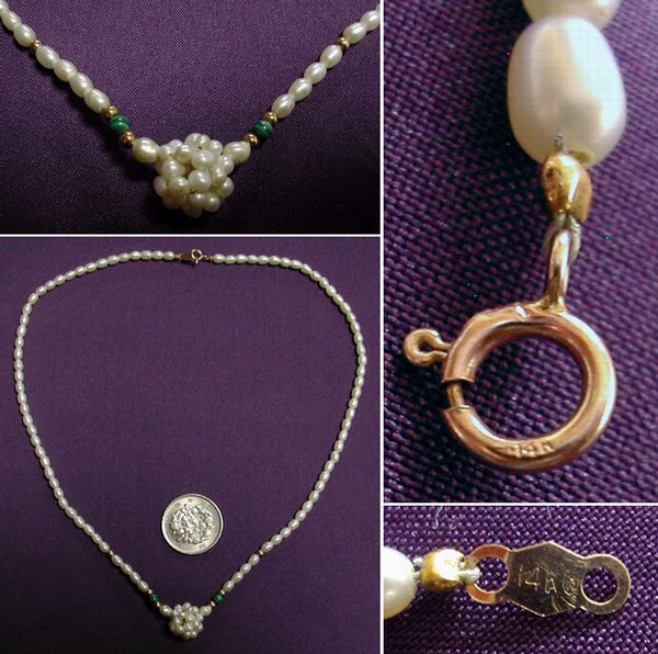 ■美品:14Kと小粒パールのネックレス トップは珠状パール DmS38