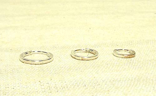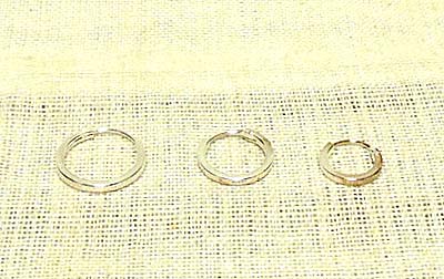 断面が四角い(スクエアー)タイプのシンプルなピアスです。(画像は左から14mm、12mm、10mmの順で並んでいます)