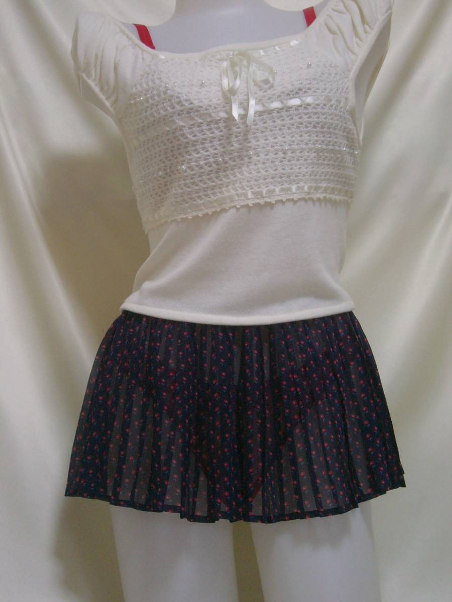 ♪♪濃紺赤いお花の超マイクロミニ☆シースループリーツ^^♪♪
