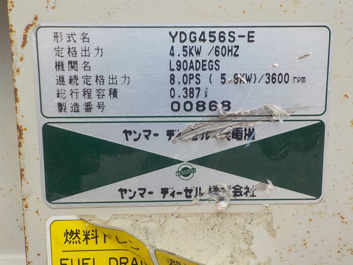 岡山発1040254300020※値下げ◆ヤンマー◆発電機◆YDG456S-E◆中古◆建設機械