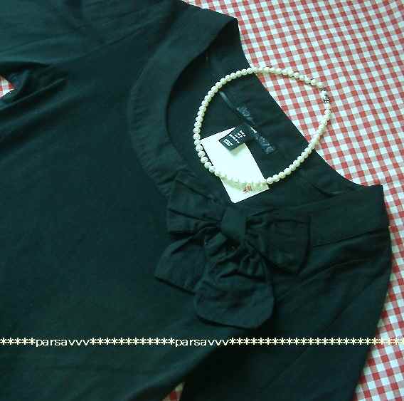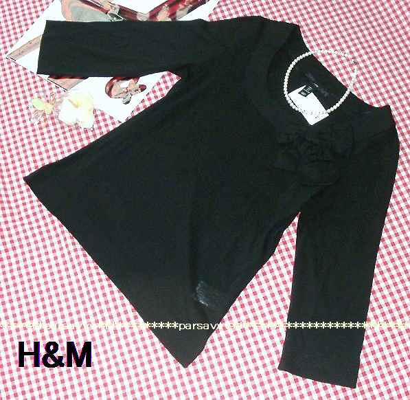 新品紙タグ付きH&M銀座店で購入しました、とってもキュートなラウンドネックに大きなおリボンが付いた七分袖のウール入りカットソーです。