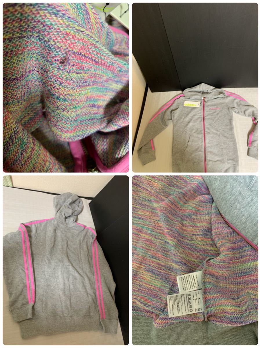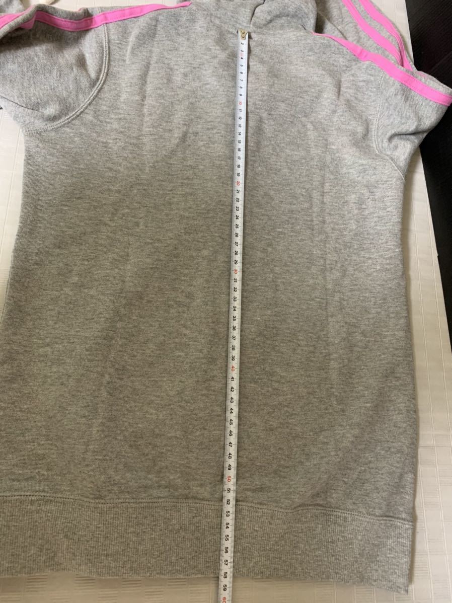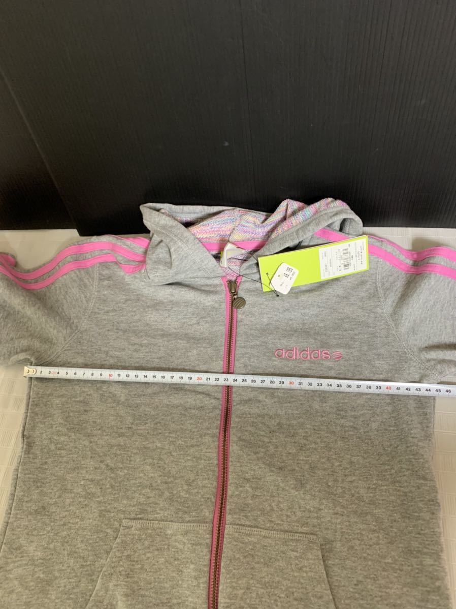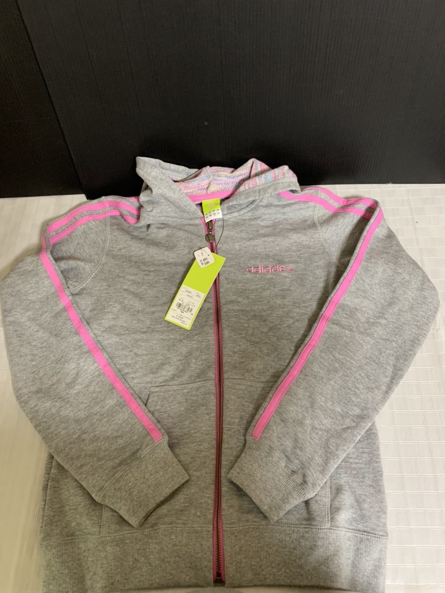 ★タグ付き adidas アディダス 長袖パーカー Sサイズ バスト78~82 身長152~158 グレー ピンクライン 保管時のたたみ跡よれシワ 内側の生地に糸ほつれ等の経年劣化有り