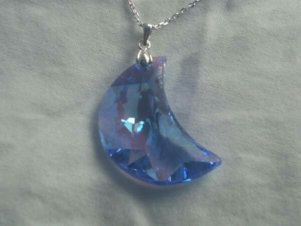 新品・ハンドメイドです。 オーストリアのスワロフスキー社のクリスタルガラスを使用して作ったペンダントです。 (三日月部分のみがスワロフスキー社のものです。) 月の直径は約3cmです。 三日月の色は透明ブルーにオーロラ加工を施した色です。 七色に光り、角度によって色が違って見えてきれいです。 チェーンの長さは約45cmです。 チェーン・金具ともシルバー925です。 |