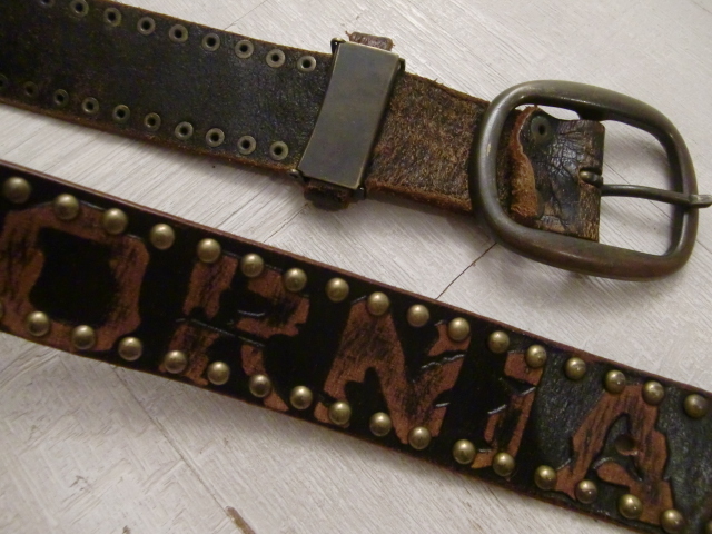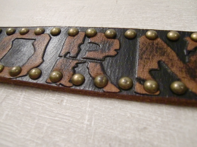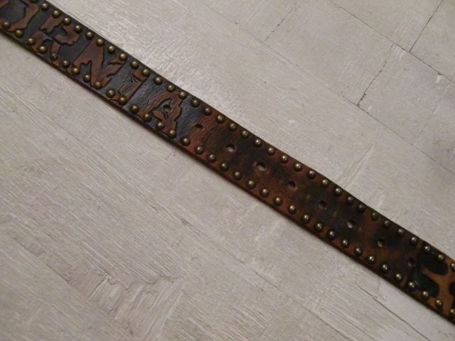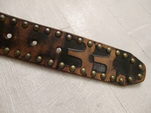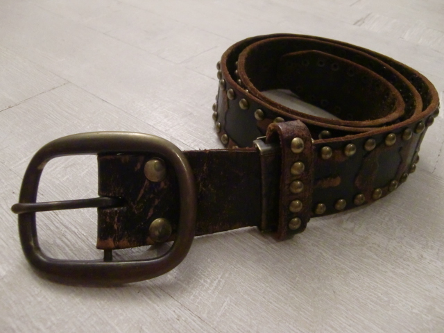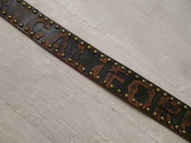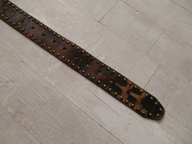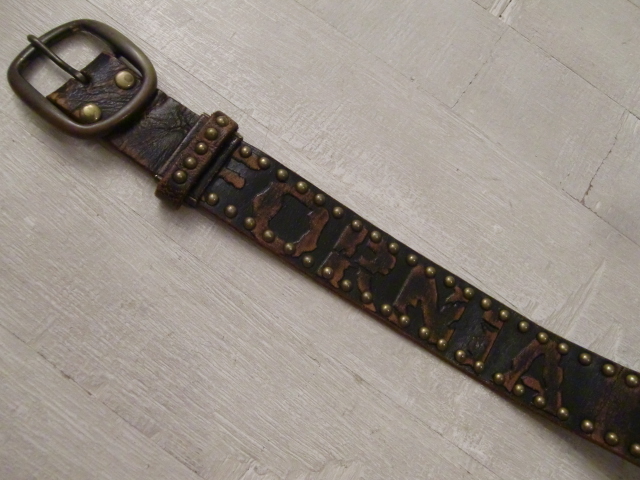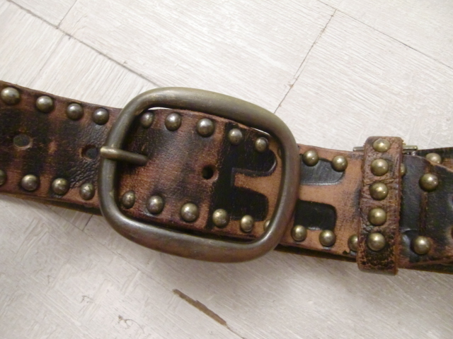 送料無料 男女兼用 WINS HOUSE California スタッズ レザー ベルト ハサミで切れて調整OK W65~85cm 革 皮 茶 バイカーライダースROCK鉄道