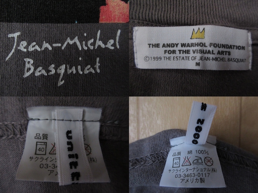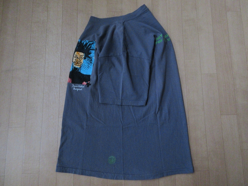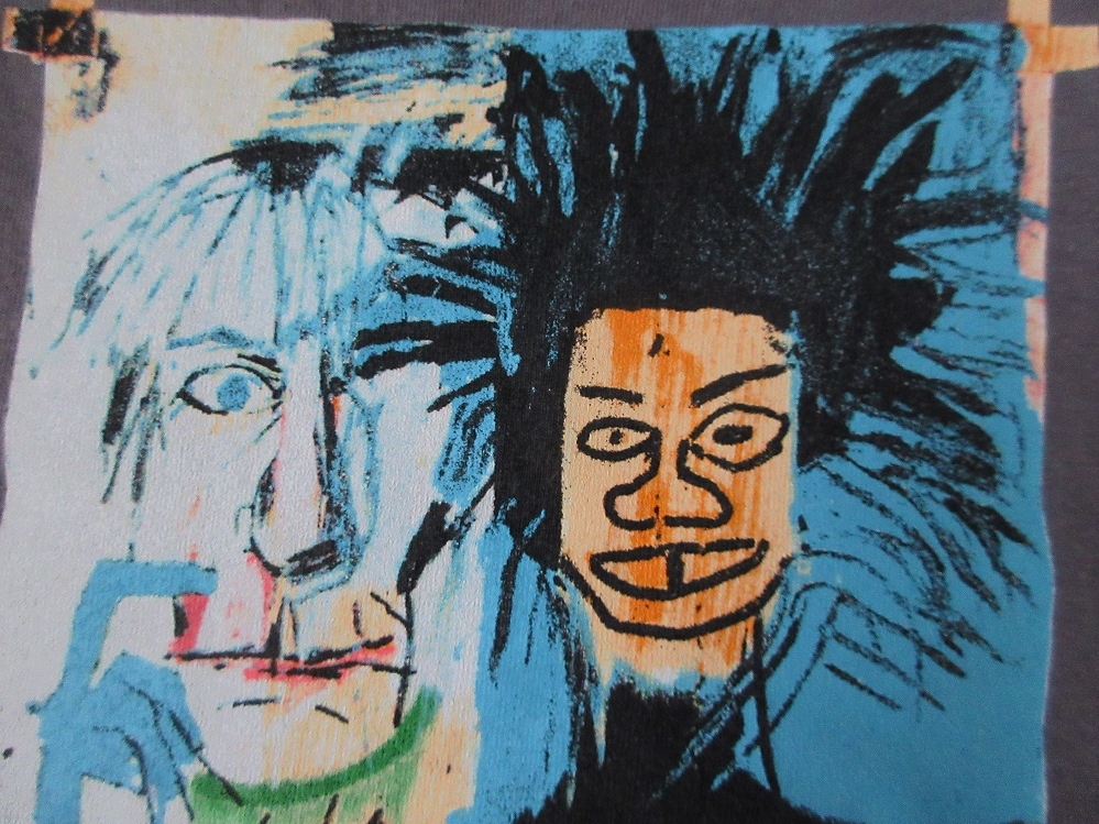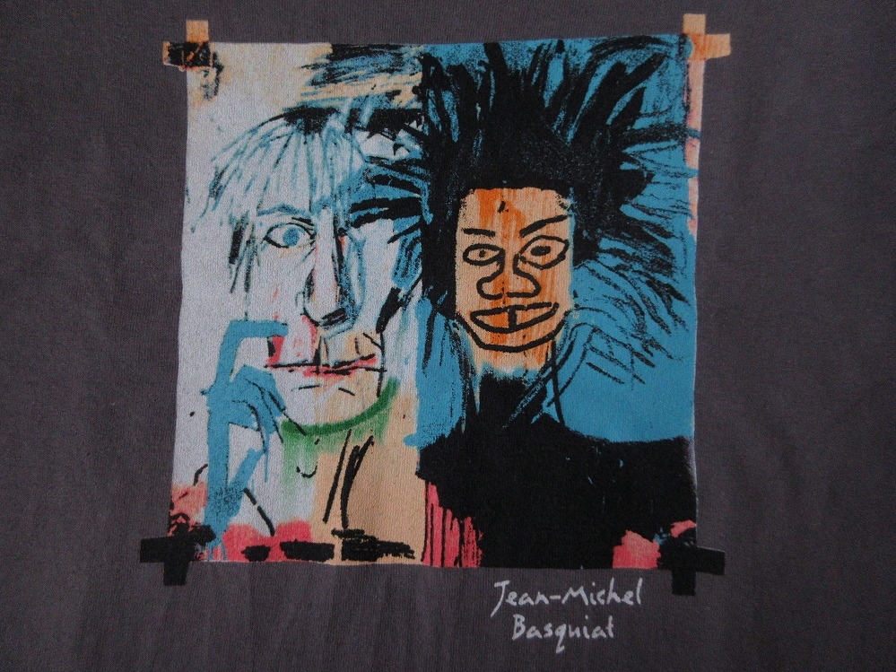 今から20年以上前の、1999年に限られた店舗で、少数のみリリースされた、「Andy Warhol(アンディ・ウォーホル)」氏の遺産を管理する財団、〔The Andy Warhol Foundation for the Visual Arts(アンディ・ウォーホル美術財団)〕の、Tシャツ表面に、画家「Jean-Michel Basquiat(ジャン=ミシェル・バスキア)」氏が、1982年に描いた、「Andy Warhol(アンディ・ウォーホル)」氏と、自画像(「Jean-Michel Basquiat(ジャン=ミシェル・バスキア)」氏)を同じキャンパスに描いた作品として知られる「Dos Cabezas(ドスカベサス/二つの頭)」のインパクトのある秀逸なプリント、Tシャツ表面左腕側下部付近に、「AW AUTHORIZED BY THE ANDY WARHOL FOUNDATION FOR THE VISUAL ARTS」のトレードマーク(Trademark/ロゴ)のプリント、Tシャツ裏面に、「THE ANDY WARHOL FOUNDATION FOR THE VISUAL ARTS」のプリントが施された、アメリカ製〔オールド・unitts 2000・Jean-Michel Basquiat・Dos Cabezas・Tシャツ〕になりますので、現在では大変希少かつ、極めて入手が困難かと思われます。