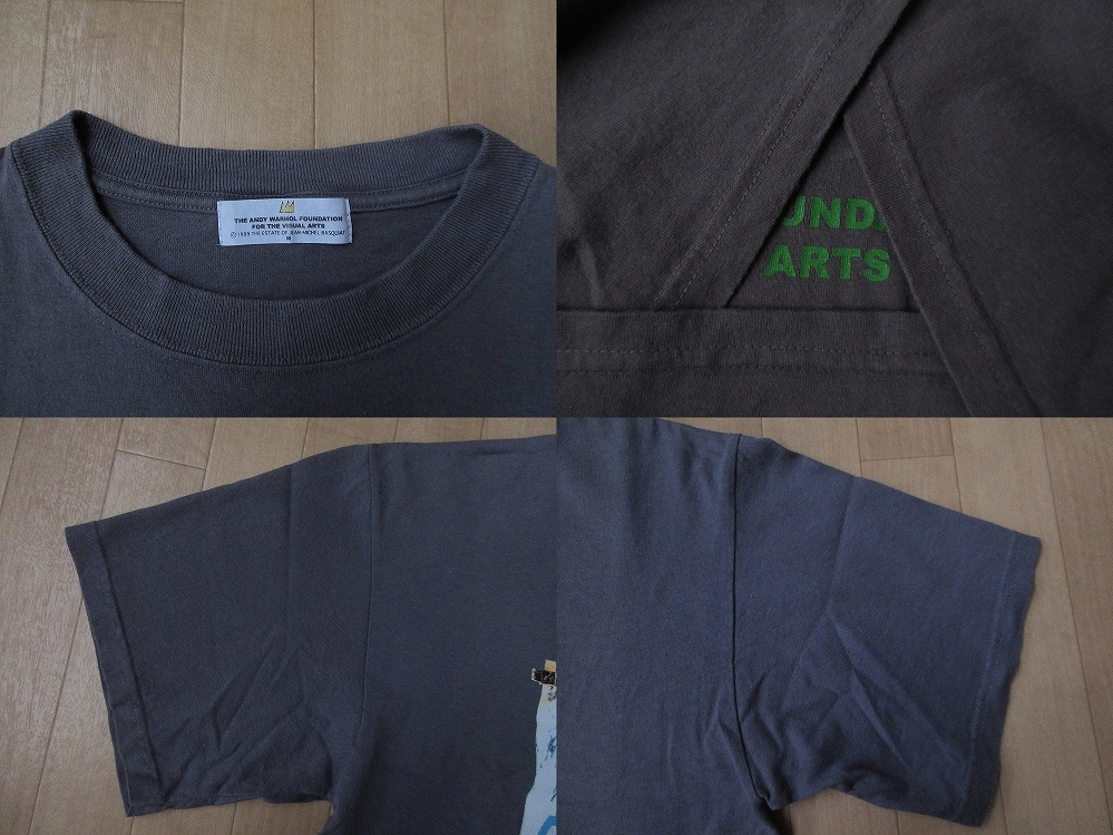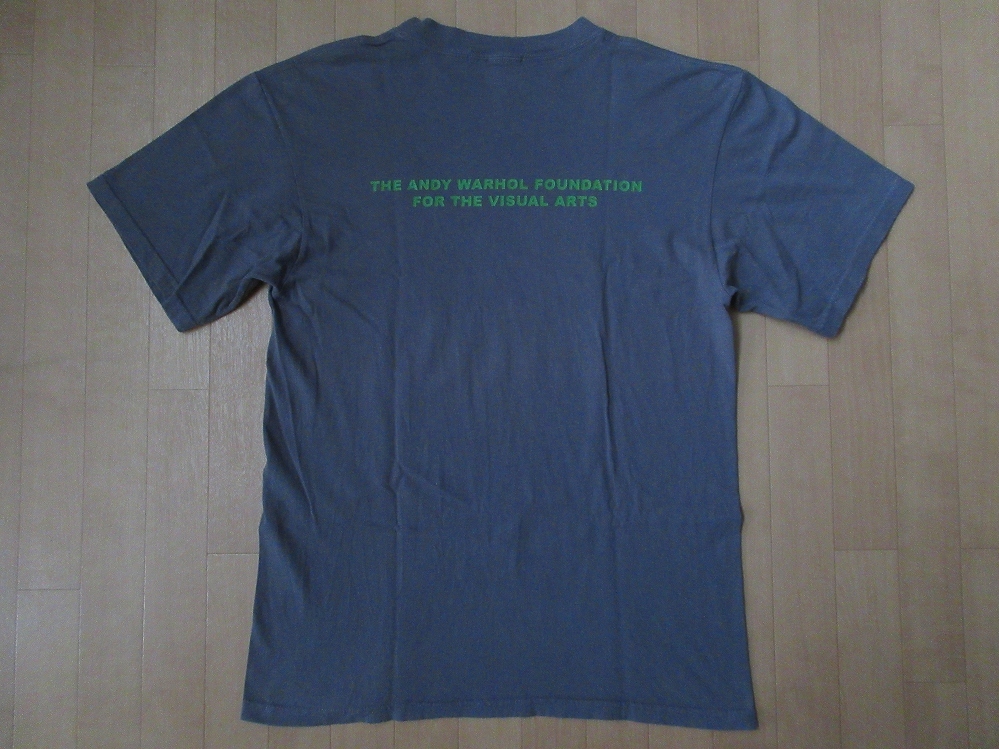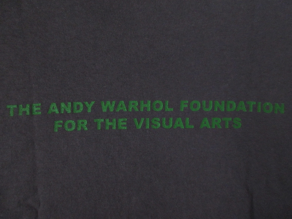 1928年に、アメリカ・ペンシルベニア州・ピッツバーグで生まれ、1987年に惜しまれつつもこの世を去った、線画にのせたインクを紙に転写する「blotted line(ブロッテド・ライン)」という大量印刷に向いた手法の発明、「Batman(バットマン)」、「The Dick Tracy Show(ディック・トレイシー)」、「Superman(スーパーマン)」等のコミックをモチーフにした一連の作品、「Campbell Soup(キャンベル・スープ)の缶」、「ドル紙幣」をモチーフにしたシルクスクリーン作品、1964年に、アメリカ・ニューヨークに、アルミフォイルと銀色の絵具で覆われた空間であり、あたかも工場で大量生産するかのように作品を制作することをイメージして造られ、「art worker(アート・ワーカー/芸術労働者)」を雇い、シルクスクリーンプリント、靴、映画などの作品を制作し、「The Rolling Stones(ザ・ローリング・ストーンズ)」の「Mick Jagger(ミック・ジャガー)」氏、「The Velvet Underground(ザ・ヴェルヴェット・アンダーグラウンド)」での活動でも知られる「Lou Reed(ルー・リード)」氏、小説家「Truman Capote(トルーマン・カポーティ)」氏、女優・ファッションモデルの「Edie Sedgwick(イーディ・セジウィック)」さん等のアーティストが集った伝説のスタジオ「The Factory(ファクトリー)」を設立、1965年に、「The Velvet Underground(ザ・ヴェルヴェット・アンダーグラウンド)」のデビュー・アルバム「The Velvet Underground and Nico(ヴェルヴェット・アンダーグラウンド・アンド・ニコ)」のプロデュース、シルクスクリーンによる「バナナ」を描いたジャケットのデザイン、「CHANEL No.5(シャネル・ナンバーファイブ)」、「Coca-Cola(コカ・コーラ)」、「Absolut Vodka(アブソルート・ウォッカ)」、「Elvis Presley(エルヴィス・プレスリー)」氏、「Elizabeth Taylor(エリザベス・テイラー)」さん、「Ingrid Bergman(イングリッド・バーグマン)」さん、「Christopher Reeve(クリストファー・リーヴ)」氏、「Caroline de Monaco(モナコ公女・カロリーヌ・ド・モナコ)」さん、「Jimmy Carter(ジミー・カーター)」氏、「John F. Kennedy(ジョン・F・ケネディ)」氏、「Jacqueline Lee Kennedy Onassis(ジャクリーン・ケネディ・オナシス)」さん、「Truman Capote(トルーマン・カポーティ)」氏、「Michael Jackson(マイケル・ジャクソン)」氏、「Marilyn Monroe(マリリン・モンロー)」さん、「Marlon Brando(マーロン・ブランド)」氏、「Mick Jagger(ミック・ジャガー)」氏、「Che Guevara(チェ・ゲバラ)」氏、「毛沢東(マオ・ツォートン)」氏、「Muhammad Ali(モハメド・アリ)」氏、「坂本龍一(Sakamoto Ryuichi)」氏、「Mickey Mouse(ミッキーマウス)」、「Minnie Mouse(ミニーマウス)」等のシルクスクリーン作品、アーティスト「Keith Haring(キース・ヘリング)」氏との深い親交、画家「Jean-Michel Basquiat(ジャン=ミシェル・バスキア)」氏との共同作品の制作等で知られる、アメリカが誇る伝説の芸術家にして、ポップアートの旗手として知られる「Andy Warhol(アンディ・ウォーホル)」氏の遺産を管理する財団、〔The Andy Warhol Foundation for the Visual Arts(アンディ・ウォーホル美術財団)〕の、Tシャツ表面に、1960年に、アメリカ・ニューヨーク・ブルックリンに生まれ、17歳の頃にニューヨークの地下鉄、スラム街地区の壁などでスプレーペインティングを開始した傍ら、「Keith Haring(キース・へリング)」氏、「Futura 2000」こと「FUTURA(フューチュラ)」氏、「RAMMELLZEE(ラメルジー)」氏等とハングアウトし、徐々にスプレーペインティングが評価され、「Keith Haring(キース・へリング)」氏、「Barbara Kruger(バーバラ・クルーガー)」さんの助けを借りニューヨークで個展を開くようになり、1983年に、アメリカが誇るポップアートの旗手として知られる、画家、版画家、芸術家の「Andy Warhol(アンディ・ウォーホル)」氏と知り合い、作品を共同制作するようになりながらも、1987年の「Andy Warhol(アンディ・ウォーホル)」氏の死去から約1年後の、1988年に惜しまれつつもこの世を去った、歴史的な事や現代社会問題に対する批評を、詩、ドローイング、絵画などテキストとイメージを織り交ぜながら、抽象的また具象的に描く独自の作風、1994年に、アメリカ・ニューヨーク州・ラファイエットストリートで「James Jebbia(ジェームス・ジョビア)」氏によって設立された、老舗ストリート・ウェアブランド「SUPREME(シュプリーム)」と2013年にコラボレーションしたことでも知られる、画家「Jean-Michel Basquiat(ジャン=ミシェル・バスキア)」氏が、1982年に描いた、「Andy Warhol(アンディ・ウォーホル)」氏と、自画像(「Jean-Michel Basquiat(ジャン=ミシェル・バスキア)」氏)を同じキャンパスに描いた作品として知られる「Dos Cabezas(ドスカベサス/二つの頭)」のインパクトのある秀逸なプリント、Tシャツ表面左腕側下部付近に、「AW AUTHORIZED BY THE ANDY WARHOL FOUNDATION FOR THE VISUAL ARTS」のトレードマーク(Trademark/ロゴ)のプリント、Tシャツ裏面に、「THE ANDY WARHOL FOUNDATION FOR THE VISUAL ARTS」のプリントが施された、アメリカ製〔オールド・unitts 2000・Jean-Michel Basquiat
