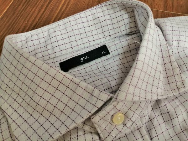 ■ g.u. ■ ジーユー シャツ Yシャツ ワイシャツ トップス 長袖 チェック コットン 白×紫 パープル
