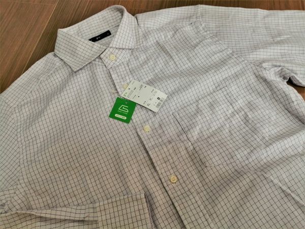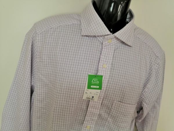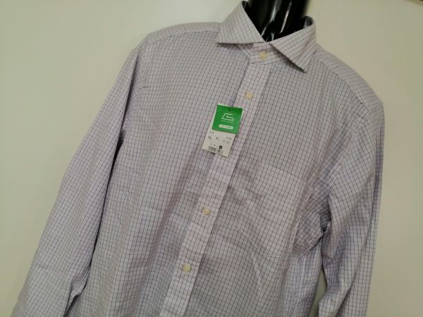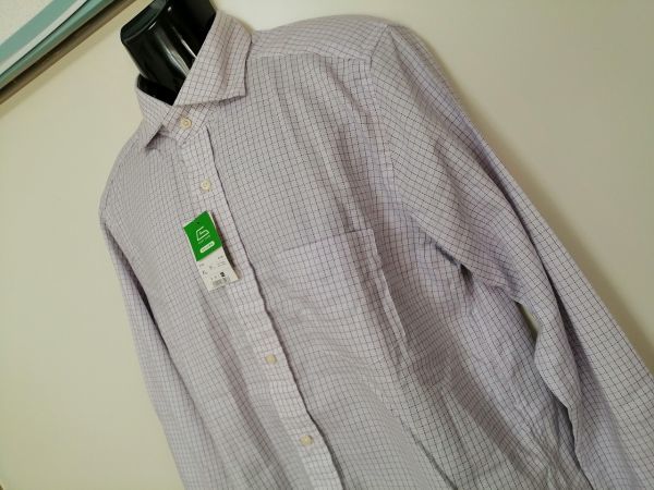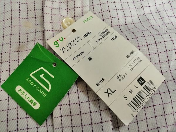 kkyj4035 ■ g.u. ■ ジーユー シャツ Yシャツ ワイシャツ トップス 長袖 チェック コットン 白×紫 パープル XL 新品タグ付き