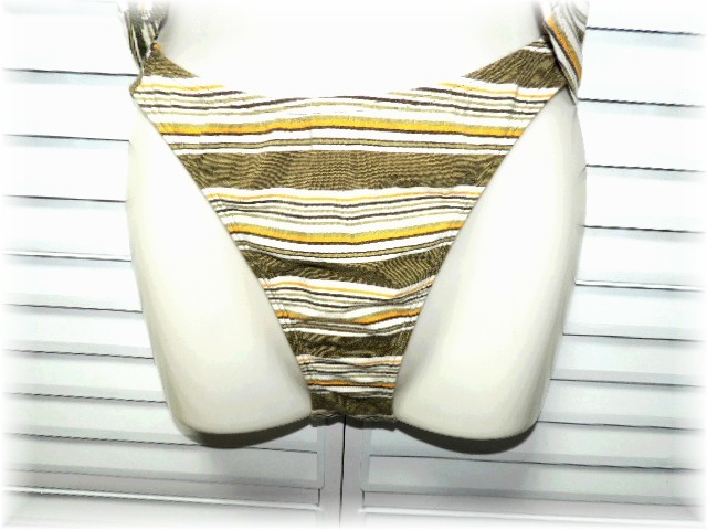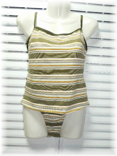 | =委託品= 中古品はクリーニング又はホームクリーニング済です。 新品・未使用品については現状のお渡しとなります。 保管の際のシワがございます。 ■■商 品 ラ ン ク■■ A0新品・未使用品です。 A1訳アリ新品・未使用品です。 B0未使用品に近い中古品です。 B1目立ったシミ・汚れ等が無い一般的な中古品です。 B2使用感(ヨレ)・毛羽立ち等あります。 B3薄め・小さめのシミ・汚れ・傷等があります。 B4目立ったシミ・汚れ・傷等があります。 B5ジャンク品です。 *注:感じ方には個人差がございます。 【レベル:B1】 目立ったシミ・汚れ等見当たりません。 ≪タグ表示≫ サイズ:9号/M バスト:83 ヒップ:87-95 ≪平置きサイズ≫ 多少の誤差はご容赦下さる様お願いします。 身幅:約35cm 着丈:約26cm(背側中央部) ウェスト:約26cm ヒップ:約31cm 着丈:約25cm ≪素材≫ アクリル95% ポリウレタン5% ≪色・柄≫ カーキーボーダー 付属パッド取り外し不可 ≪お願いとご注意≫ ・新品・未使用品でも一度は人手に渡った物ですので完璧を求める方はご入札をご遠慮下さい。 ・お振込み手数料はご負担下さいます様お願いします。 ・仕事・家事の合間で作業をしておりますのでお急ぎの方のご入札をご遠慮下さい。 ・ご入金確認のタイミング(夜の確認)により発送が1~2日程遅れる場合がございます。 ・頂いた個人情報はお取引後すみやかに削除させて頂きます。 ・土日祭日の発送は郵便局都合によりお休みします。 ・フラッシュやPC環境により色が違う場合がございます。 ・喫煙者おりません。ペット(猫)がおります。 ・評価はご指示がない限り商品受け取り完了のお知らせ後にさせて頂いております。 ≪不要の方はお手数おかけしますがメッセージをお願いします。≫ | |||