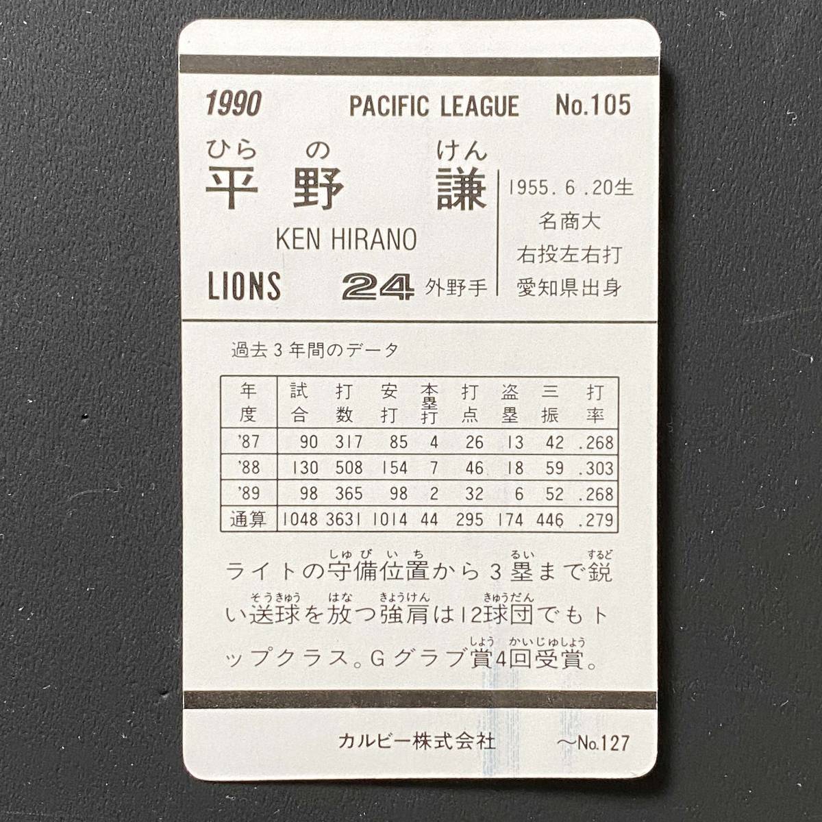 FP【当時もの】カルビー 野球 カード 1990 No.105 平野 謙 プロ野球 | |