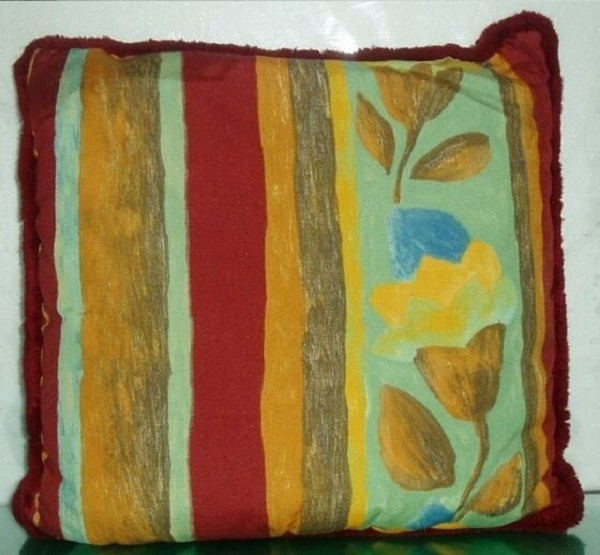 650/クッション/フリンジ/両面 縦柄花/37×38cm×厚/綿/背もたれ 寝室 ベッド ソファ リビング 椅子 腰当て/おしゃれ やすらぎ ナチュラル