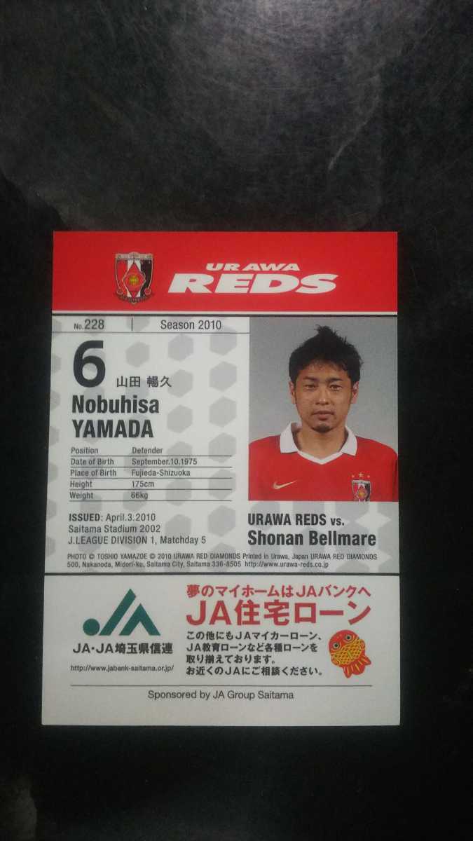 2010年の浦和レッズのマッチデーカードの山田暢久選手になります。カードスリーブと硬質のカードケースに入れて発送いたします。新品になりますのでノークレーム、ノーリターン、ノーキャンセルでお願いします。