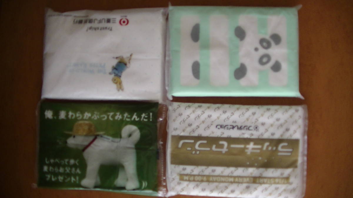 ポケットティッシュ 4点 セット ★ ラッキーナンバーセブン ピーターラビト ソフトバンク お父さん パンダ