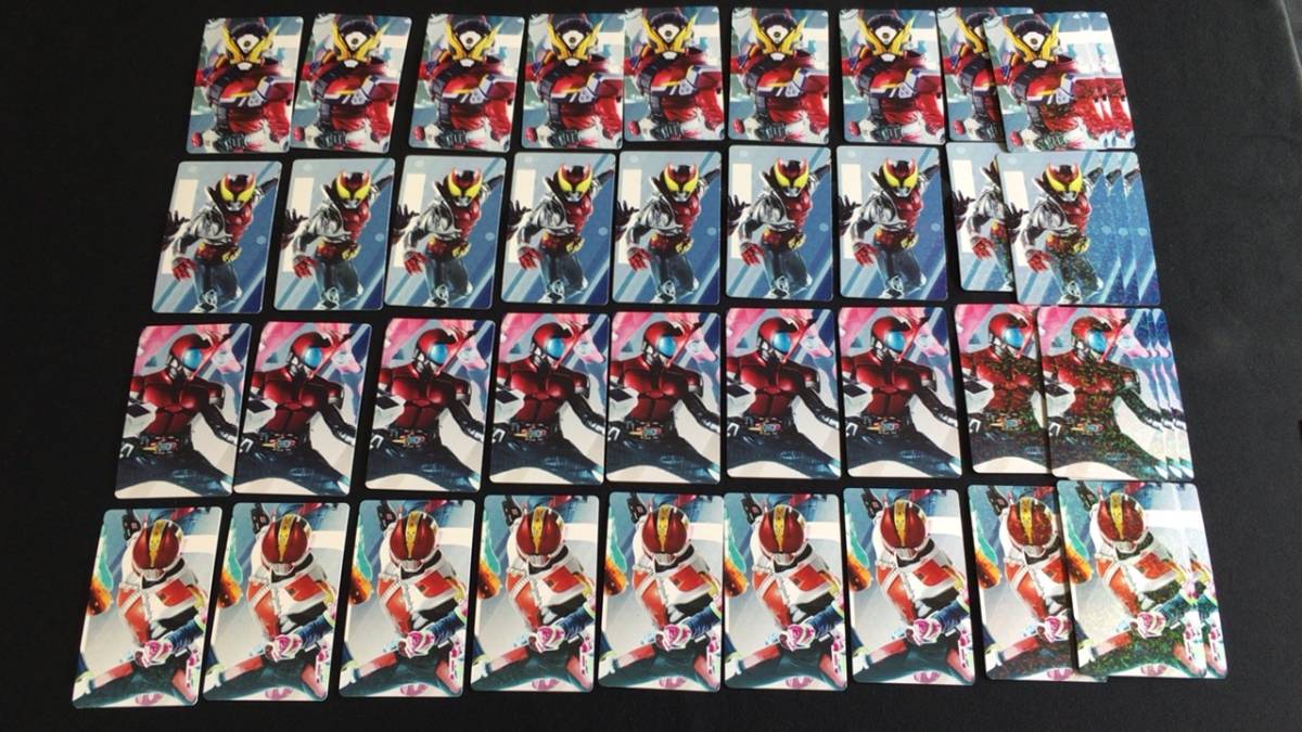 仮面ライダーのカードになります。細長いカードです。30枚以上ありますが4種しかないです。
