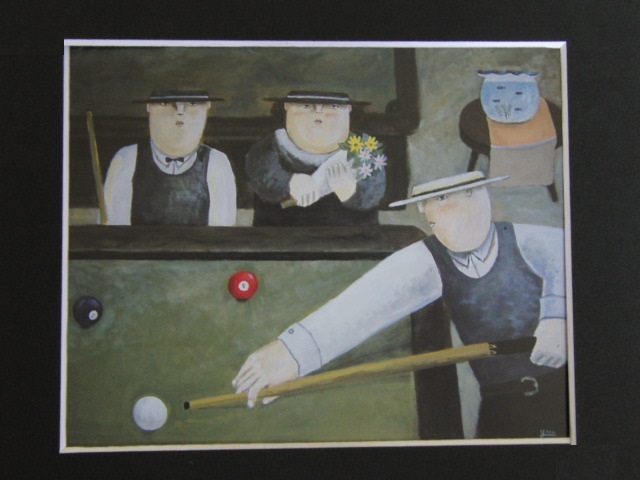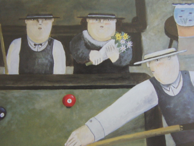 山口ダン、【撞球室】、希少な額装用画集より、新品額装付、状態良好、送料込み、日本人画家