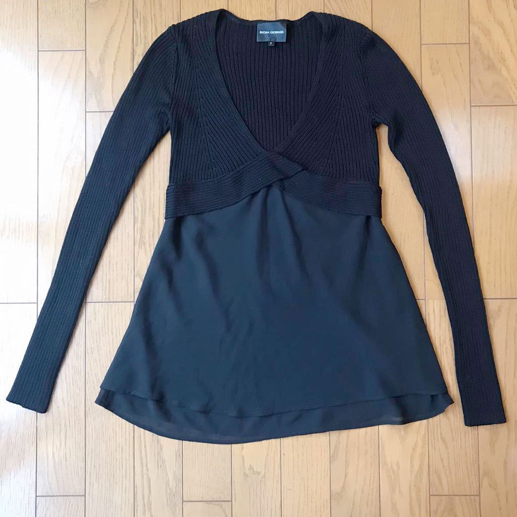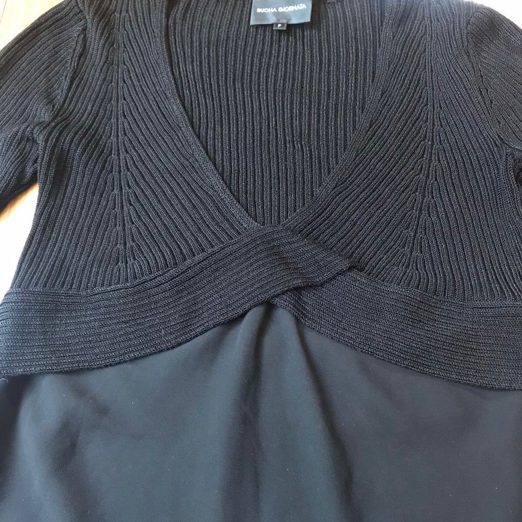 バストより上の部分はニットでふんわりと、バストより下の部分はサラッとフレアなお品。