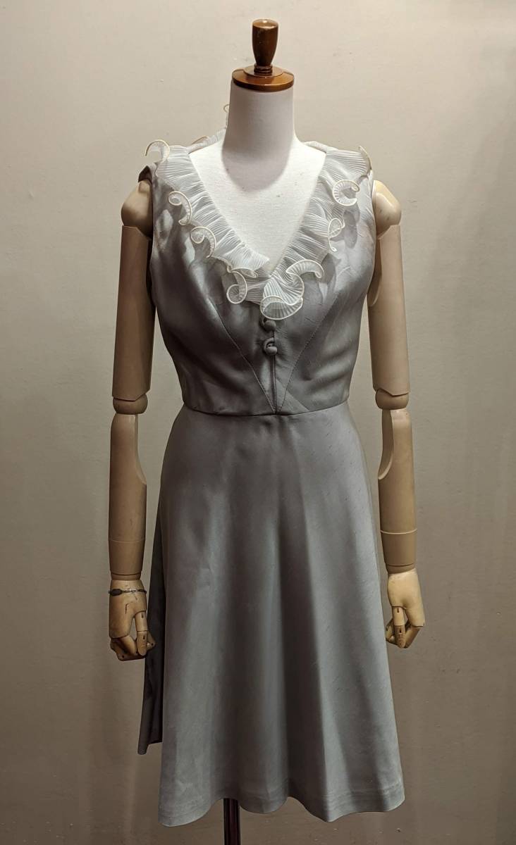 アメリカヴィンテージ古着50’sラッフル襟シルクシャンタンドレス/ロカビリー60’sモッズワンピースレトロ衣装ΓSD