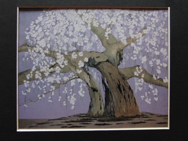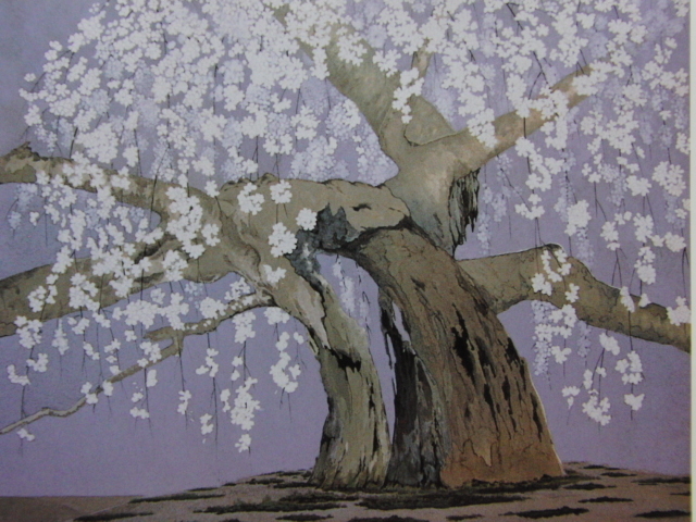 末光正峰、【東の枝垂桜】、希少な額装用画集より、美品、新品額装付、インテリア、春、桜 送料無料、yoshi