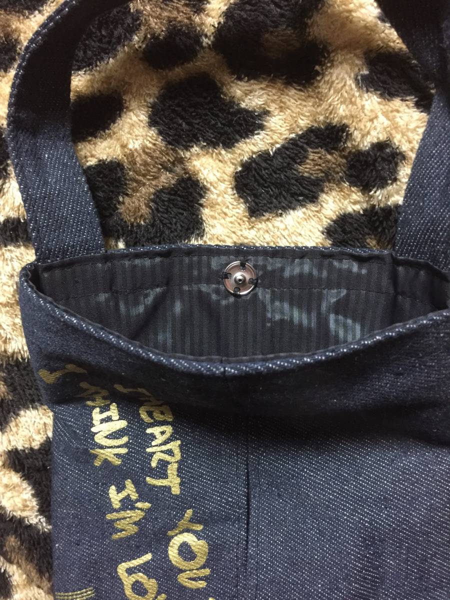 外側は硬目のデニム調生地で、しっかりした素材になります。