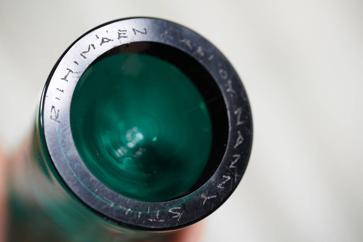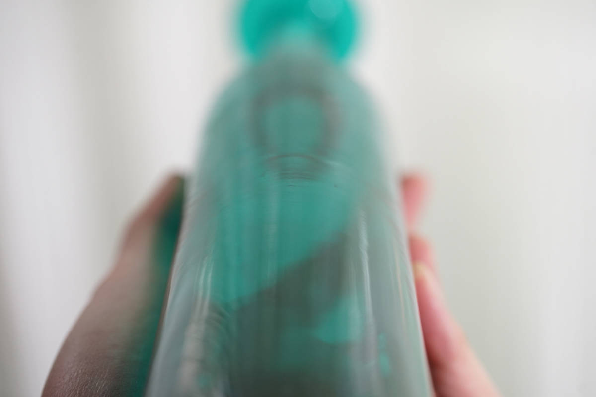 手吹きのガラスボトル。フィンランド語で装飾的なボトルという意味である