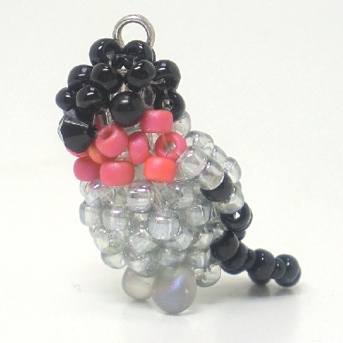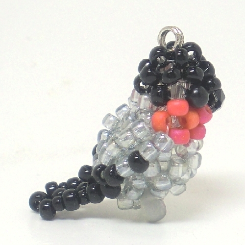 ウソ うそ ビーズの小鳥★3WAY(ストラップ・スマホジャック・ファスナーチャーム)工房小鳥屋さん ビーズインコストラップ 野鳥