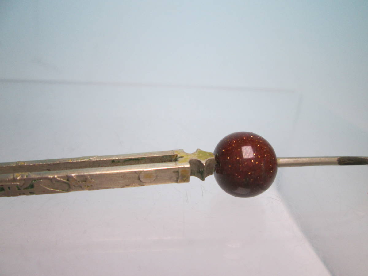 ☆アンティーク・大振り 24cm 彫金細工 砂金石の玉かんざし 26g