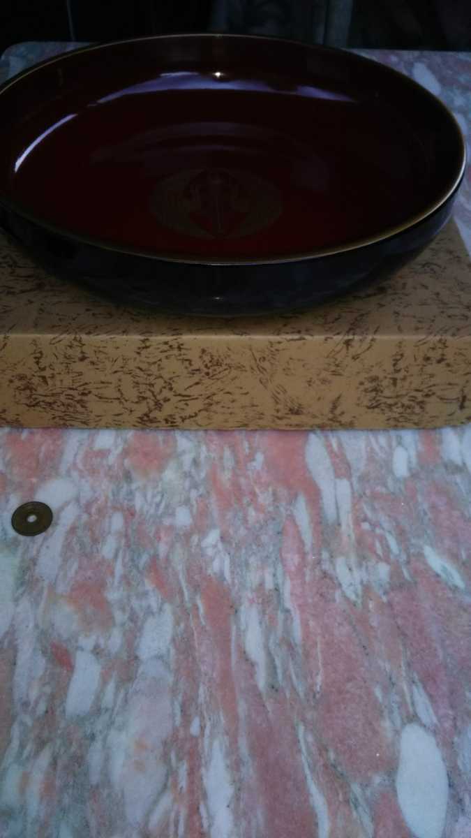 ご覧いただきまして、ありがとうございます。 以下お読みいただき、入札をお待ちしています。 【商品の説明】 鶴二羽の家紋本金蒔絵菓子鉢(樹脂製) サイズ【直径30㌢高さ6㌢重さ600㌘】 旧家骨董品整理の際あわせて回収しました贈答品です。 元箱は経年の傷みがありますが、昭和のよいお品です。 そのまま使うのもよいし、新しい使いみちを見立てるのも◎ 【商品の状態】 使用状況 :保管品です。 多少の小傷等ありますが、目立った傷みはないので実用的です。 注意事項 :画像にてご判断、ご検討よろしくお願いします。 【発送方法】 80サイズにて発送予定です。 落札後に送料連絡設定してますので、複数落札分は160サイズ以内で同梱対応いたします。 発送に使用します資材は省資源に努めております。 【その他】 その他不明点はご質問ください。 よろしくお願い申し上げます。 【最後に】 最後までご覧頂きありがとうございます。 気持ちのよい、お取引を心がけております。 どうぞよろしくお願い申し上げます! | |||