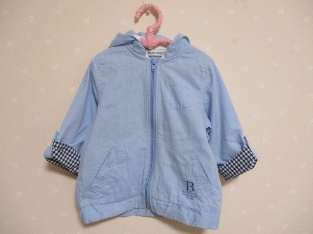 Ω BeBe ベベ Ω★90㎝★ 可愛い薄手ジップアップサマージャンパー 水色 0419 | |||