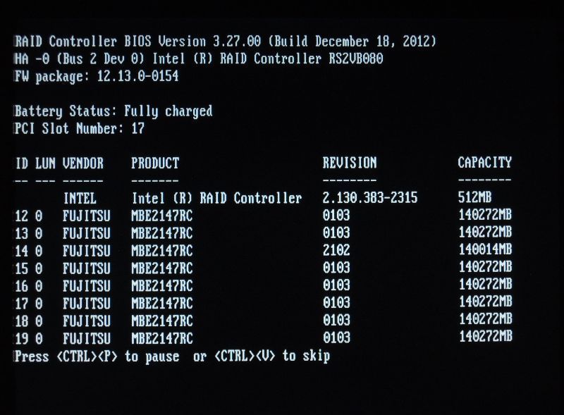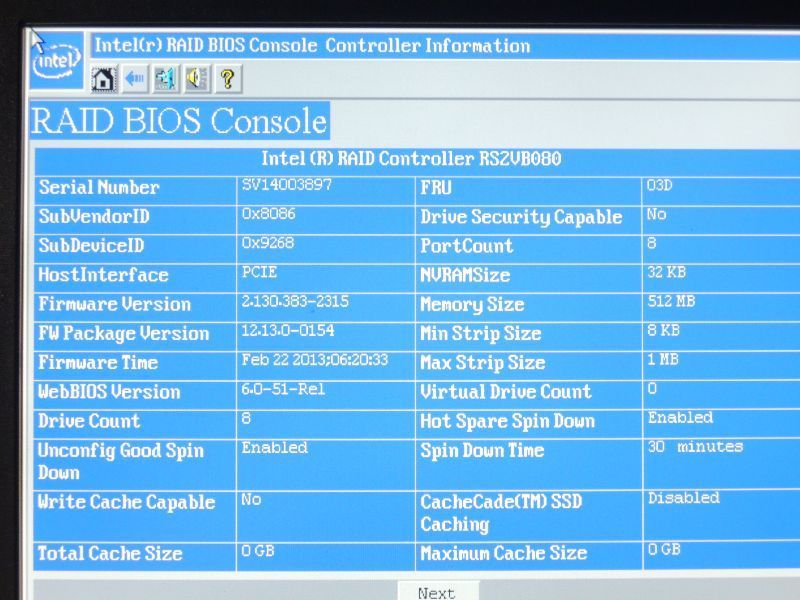 INTEL RS2VB080 6Gb/s SAS Raid Controller (LSI 9260CV-8i OEM) CacheVault/キャパシタ/CacheOffload搭載 動作画面有 です。