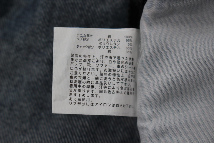 ★素材は デニム素材 綿100% リブ部分 ポリエステル95% ポリウレタン5% チェック部分 ポリエステル65% 綿35%です。