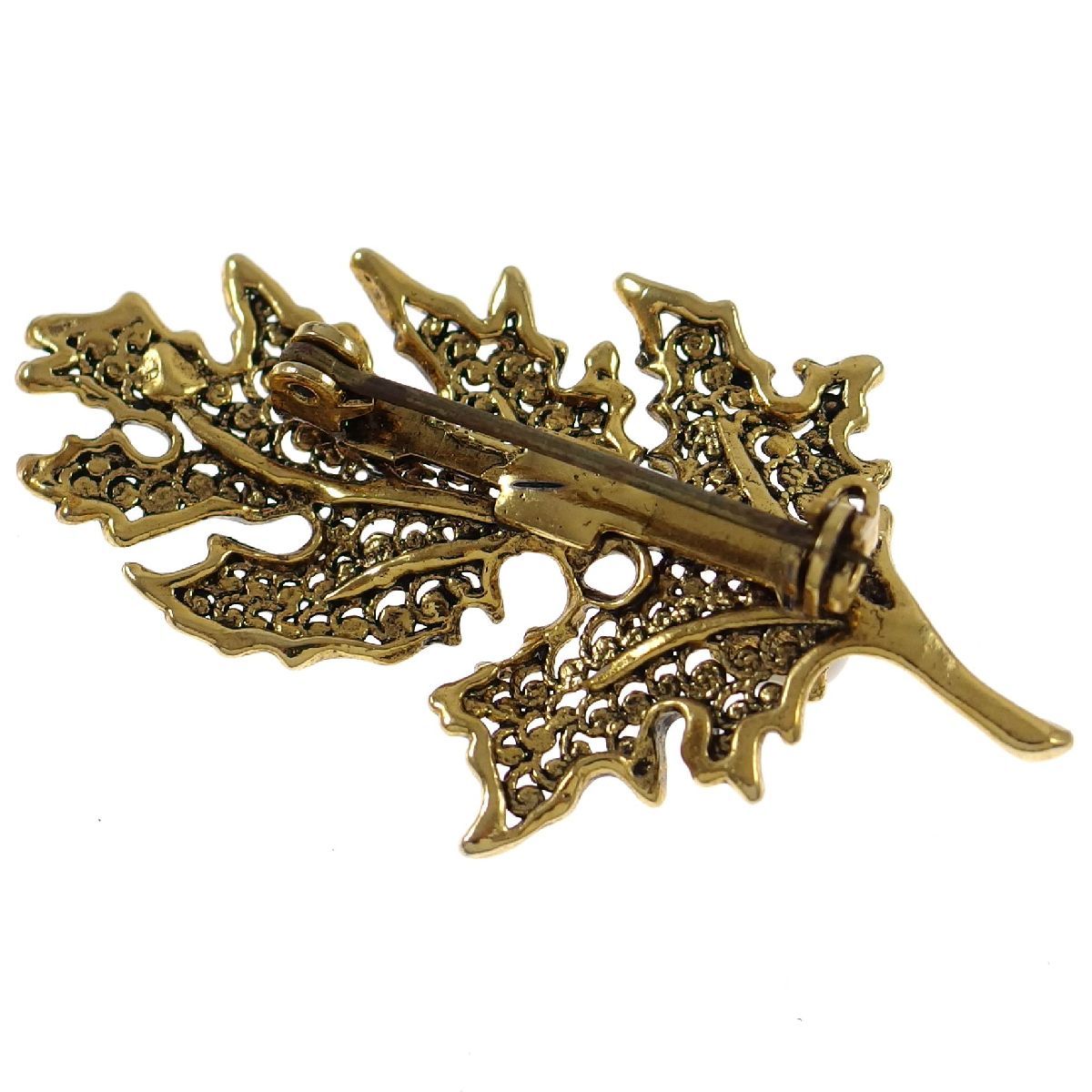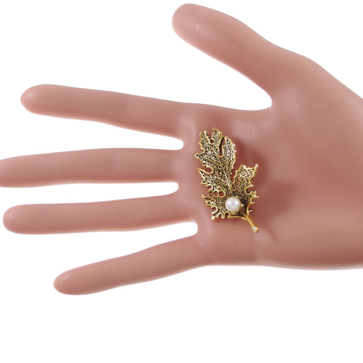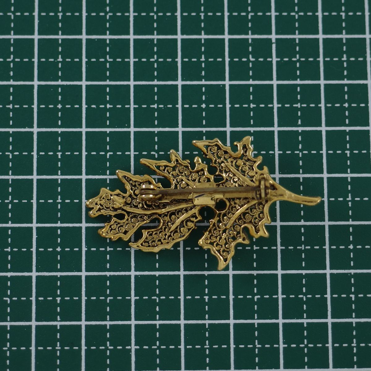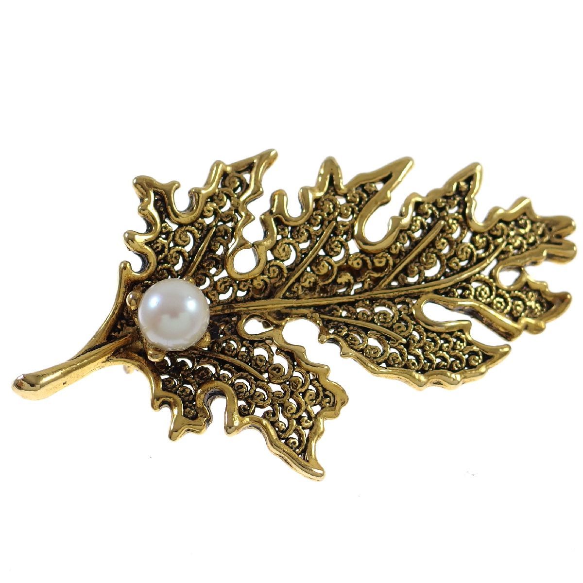 A5592◆ リーフモチーフモチーフ * 1粒フェイクパールで飾られた葉っぱ ◆ ヴィンテージ調 * ブローチ ◆