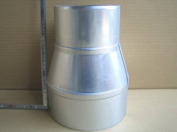 ご覧いただき有難うございます。 ※空調ダクト材は、表面仕上げが艶有りから艶無しへと順次変更となっております。複数個や多種類ご注文の際に両方が混合されることがございます。また、どちらかへのご指定は不可となります。ご了承の程よろしくお願いいたします。(写真は艶有り商品です) 新品 空調ダクト用レジューサー(200-150) の出品になります。 主な用途 空調ダクト(スパイラルダクト)の異型継手・ジョイント用 お値段 ◆レジューサー(200-150)品 1個 3,187円(送料別)です。 ~~~~~~~~~~~~~~~~~~~~~~~~~~~~~~ | |