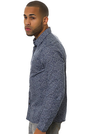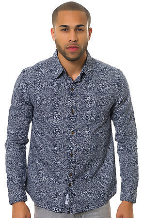 新品UK産 BELLFIELD Alexi Buttondown Shirt/Navy ベルフィールド 長袖ボタンシャツ メンズ L 総柄 魚柄 ASOS