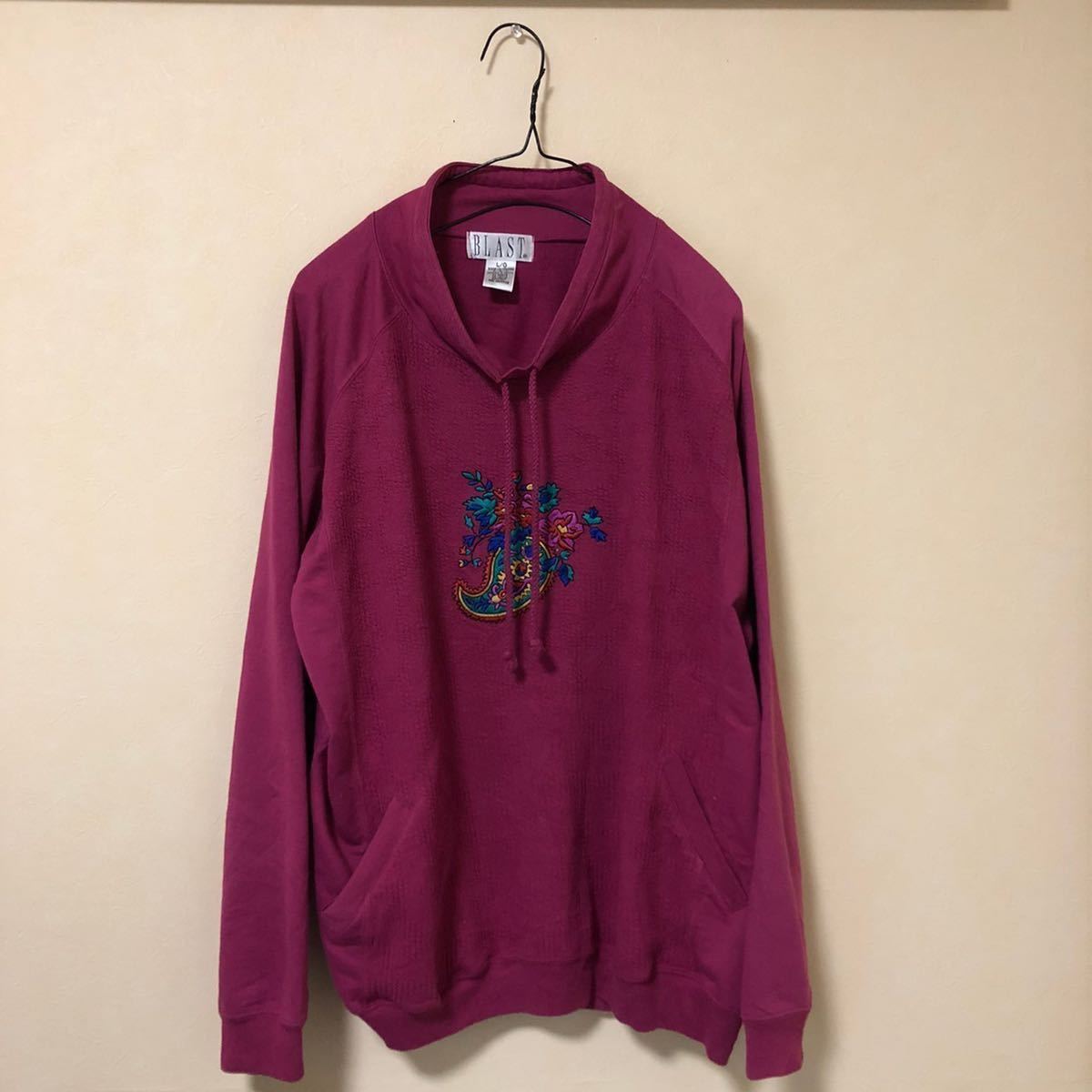 真ん中にある刺繍が大きめで可愛らしく、ポケットも付いていて便利なスウェットです。