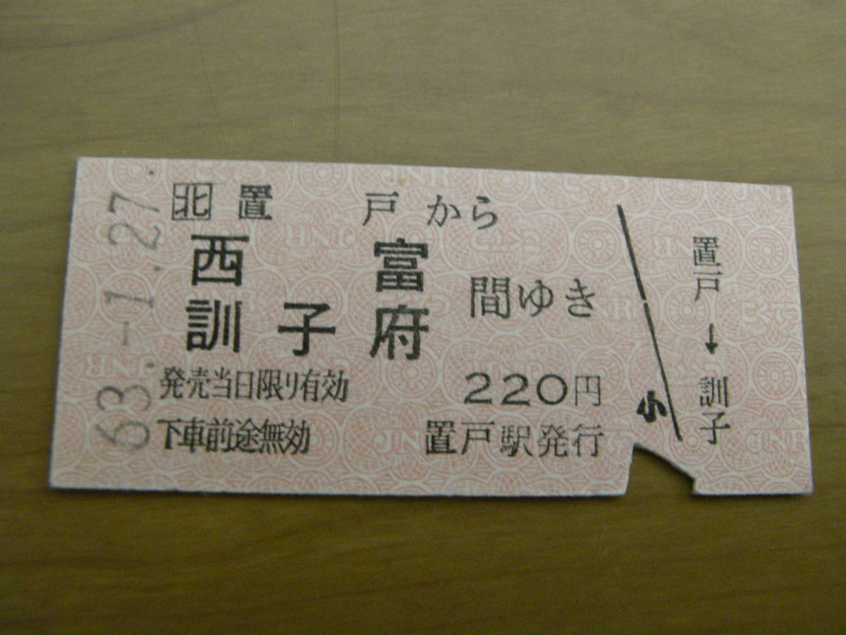 池北線 置戸から西富 訓子府 間ゆき 220円 昭和63年1月27日 置戸駅発行
