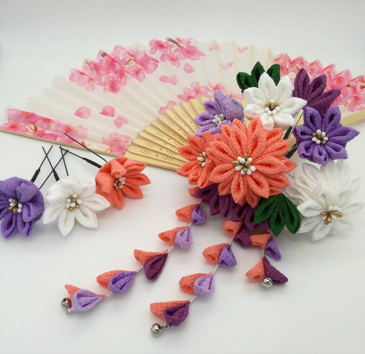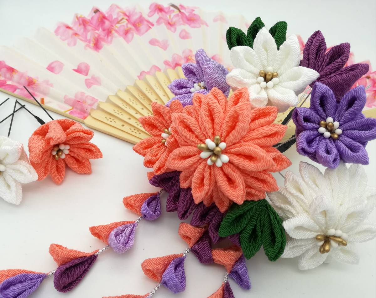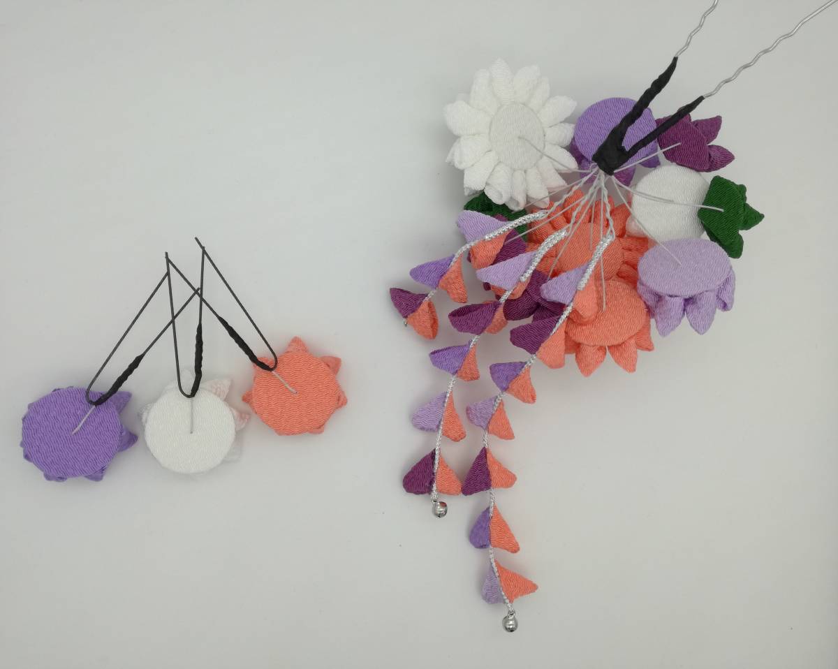 送料無料<工房静>つまみ細工 牡丹さがり 成人式 卒業式 前撮り 着物 髪飾り 袴 小学校 大学 七五三 十三詣り