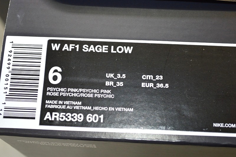 2019モデル 新品未使用 NIKE ナイキ W エアフォース1 AF1 SAGE LOW AR5339 601 ピンク ホワイト 厚底スニーカー 14,300円 US6 23センチ