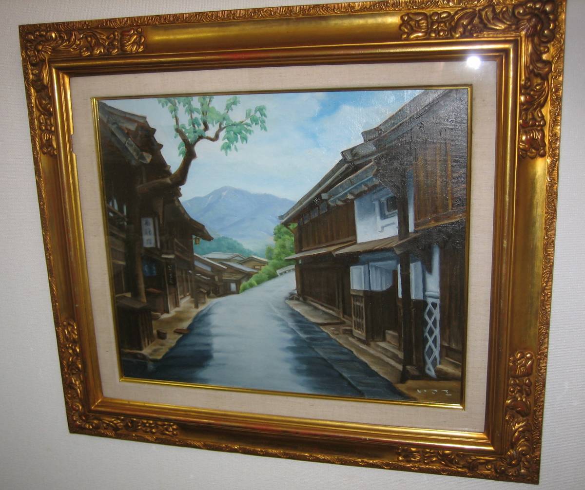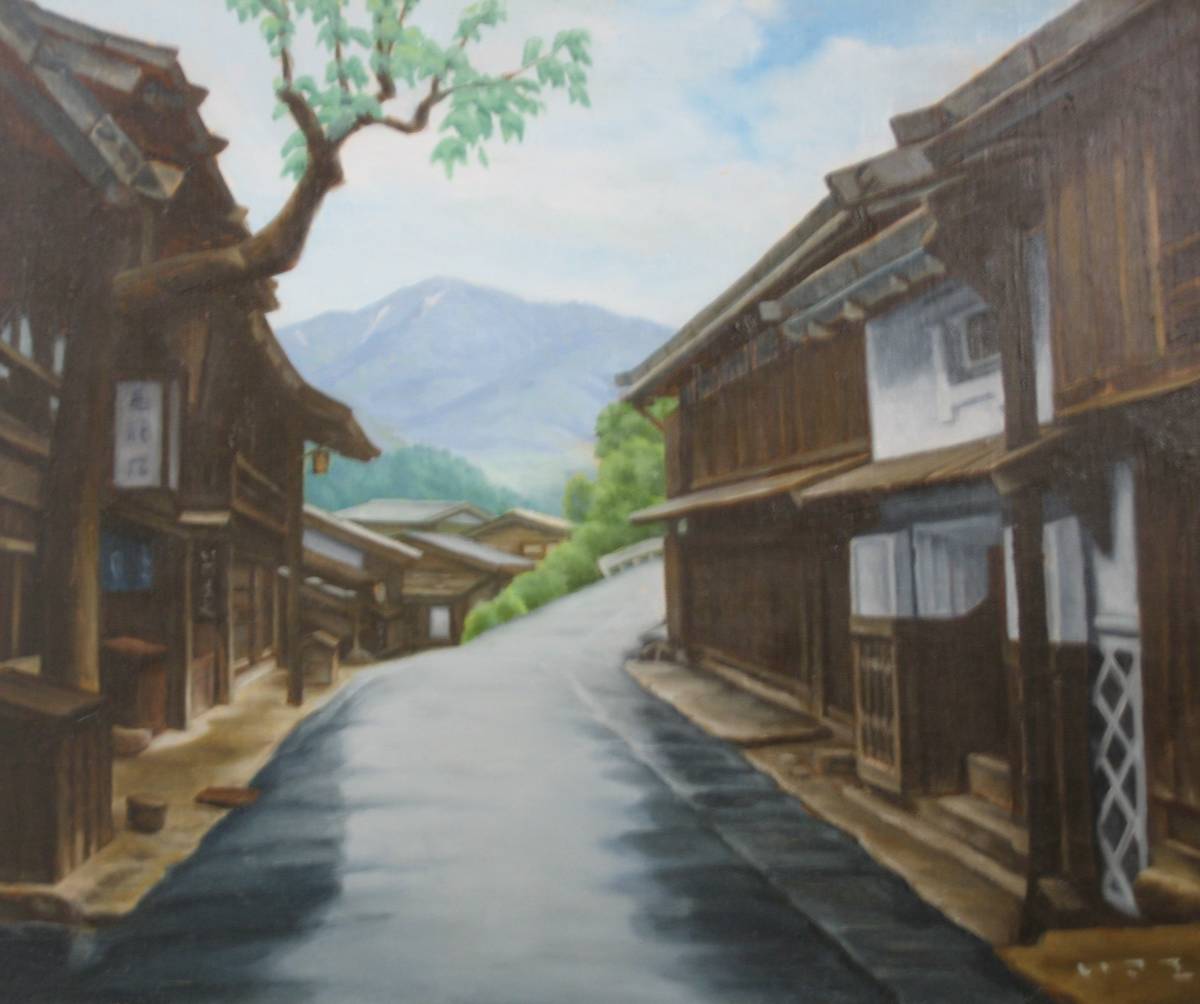 坂本いさを「恵那山と妻籠宿」F8 油彩 【真作保証】