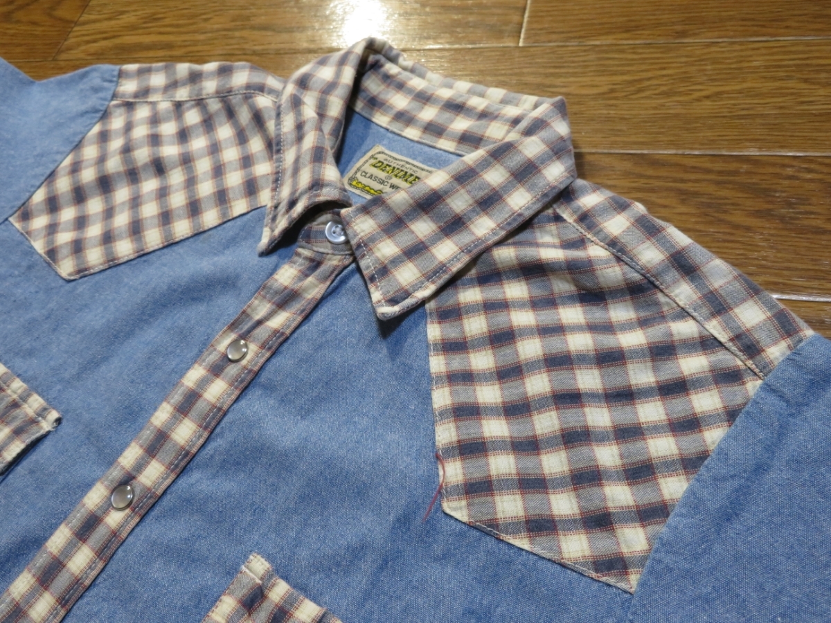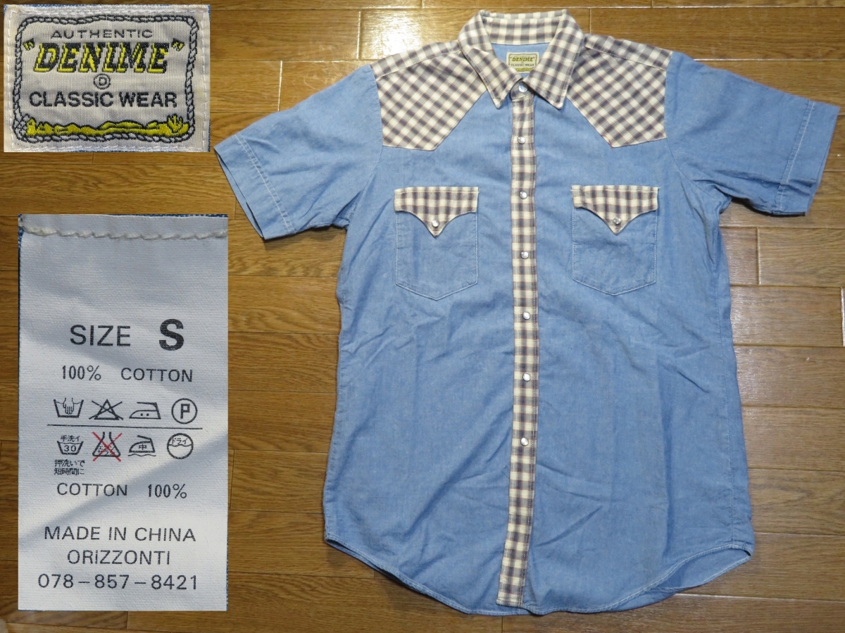 S寸★初期【オリゾンティ期】DENIMEドゥニーム【チェック切り返し】ウエスタンシャツ【半袖シャツ】綿100%【ゆうパケットなら送料無料】★