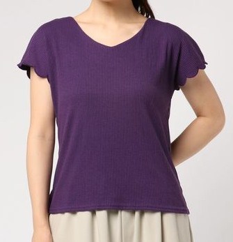 新品*定価3229*Green Parks ・前後リバーシブル スカラップスリーブ テレコ プルオーバー トップス Tシャツ グリーンパークス カットソー