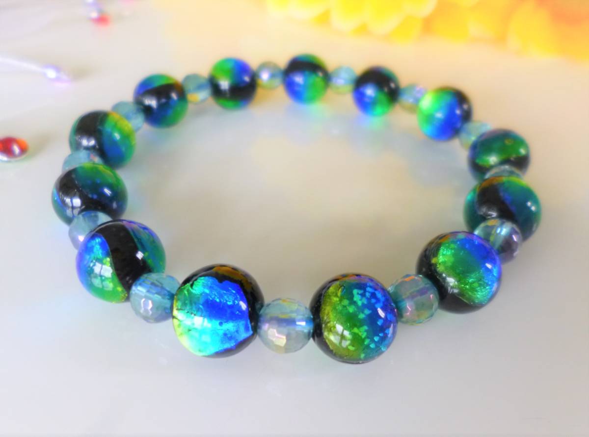 沖縄の海のような☆   ☆綺麗な とんぼ玉(トンボ玉)    きらきら輝く☆     ホタルガラス♪    ブラックブルーイエロー☆   アクアオーラ☆  128面ミラーカット   ☆10mm☆   ☆17cm☆
