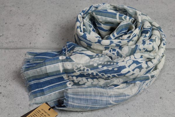 上質な手触りの良いコットン混のリネンの生地でペイズリーとストライプの混合柄が奇麗なストールです。