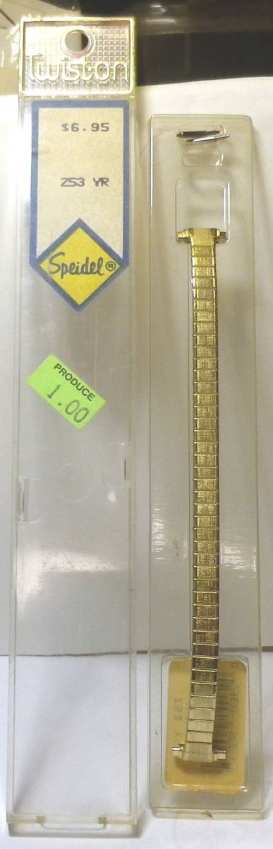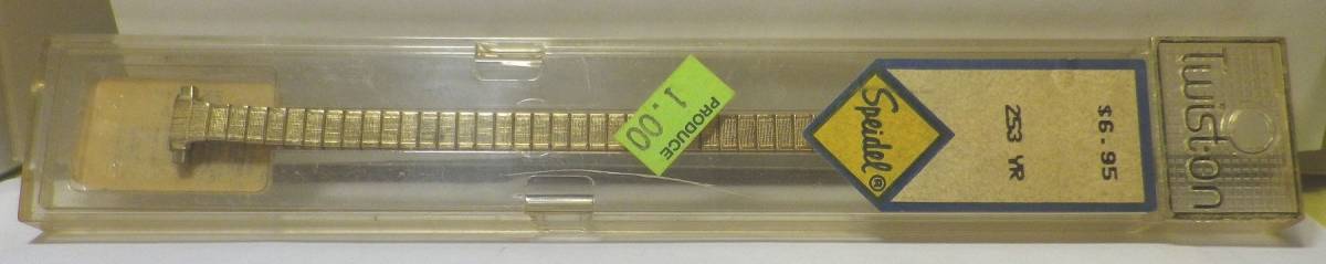 USAのメーカー『SPEIDEL』の『TWISTON』ブランドの40年代の未使用のデッドストックです。LADYSのEXPANSIONタイプのメタルバンドで、ラグ収縮・拡張式でラグ幅が9ミリ~13ミリまで対応します。パッケージ、9ミリ~13まで対応する片側収縮式のばね棒付です。USA製です。ベルト部分はばね機構で伸び縮みします!ベルトに詳しい方ならコマを外して短くする事が出来ます。ゆるめでブレスレット風でも楽しめると思います。! size の詳細 時計のラグ幅9~13(ミリ)~に付けられます、ベルトの長さは約13.7センチ(ベルト収縮時、ベルトを伸ばした場合は20.5センチ)、ベルトの厚み:3.ミリ(通常のベルトの部分) ノークレーム、ノーリターンでお願いします。 |