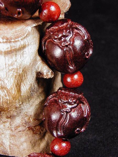 ●簡要説明:この出品は、この出品は、高さ20mm天然珍品大粒高彫インド小葉金星紫檀腕輪念珠『福』 です!!