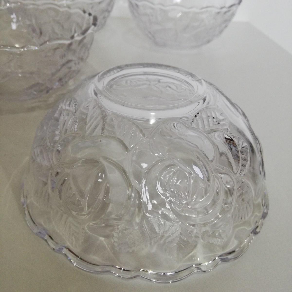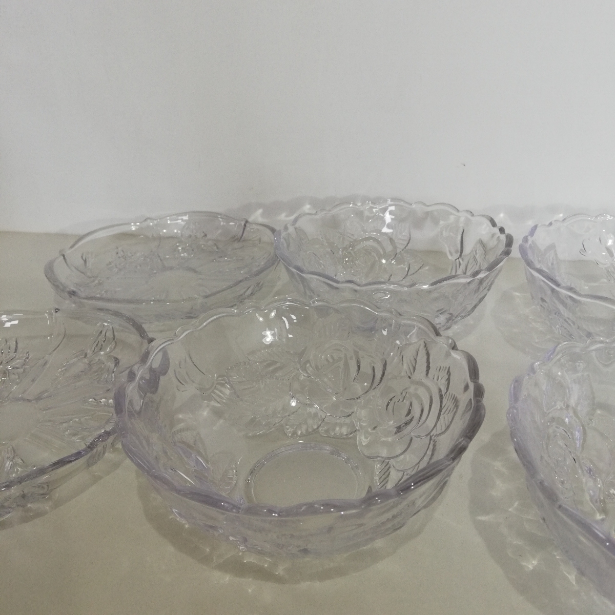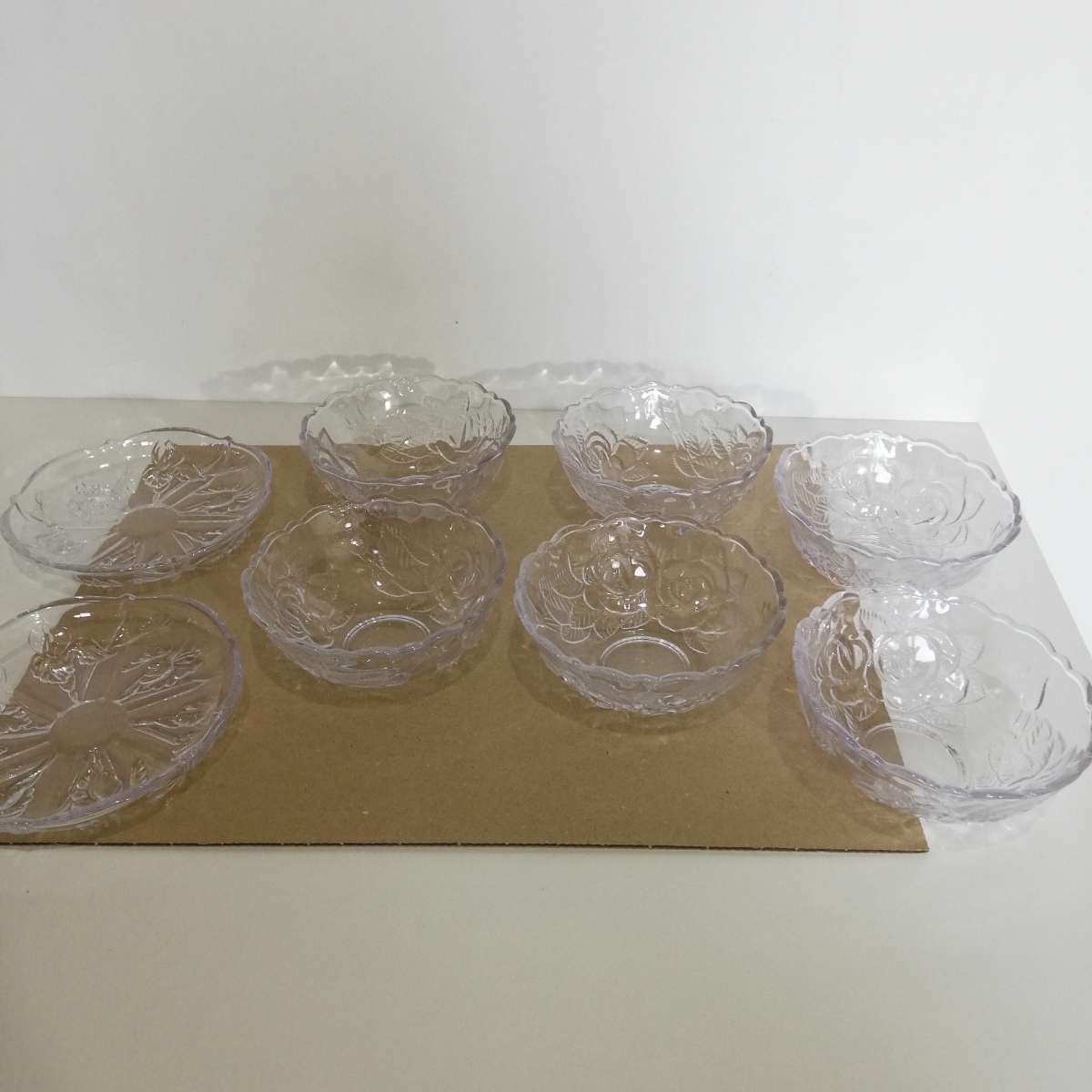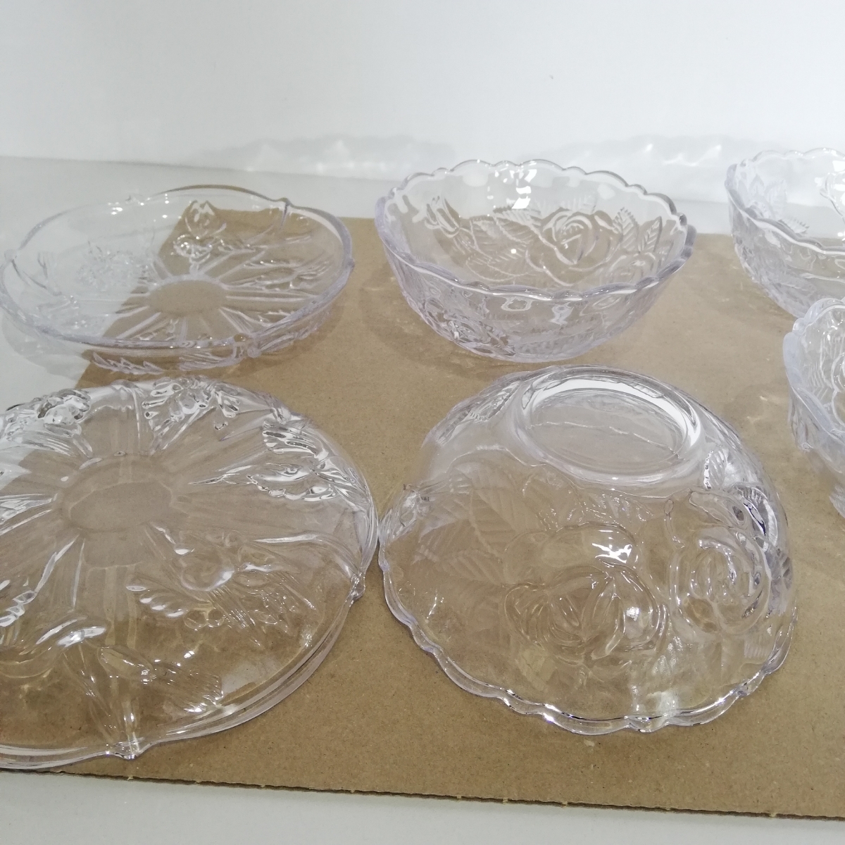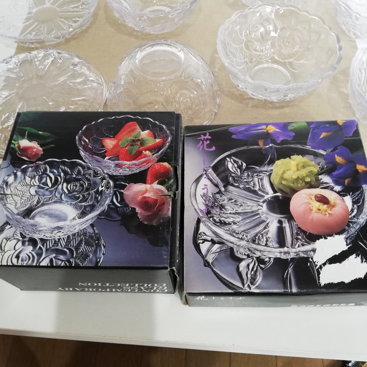 曽我ガラス MID WINTER ROSE & 花しょうぶ 裏陽刻ガラス皿鉢 8点セット [デザート プレート ボウル 型ガラス 薔薇 菖蒲 レトロ 昭和]
